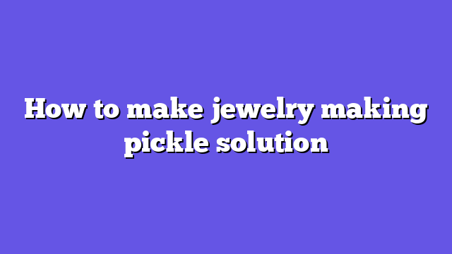 - How to Make a Basic Jewelry Making Pickle Solution at Home